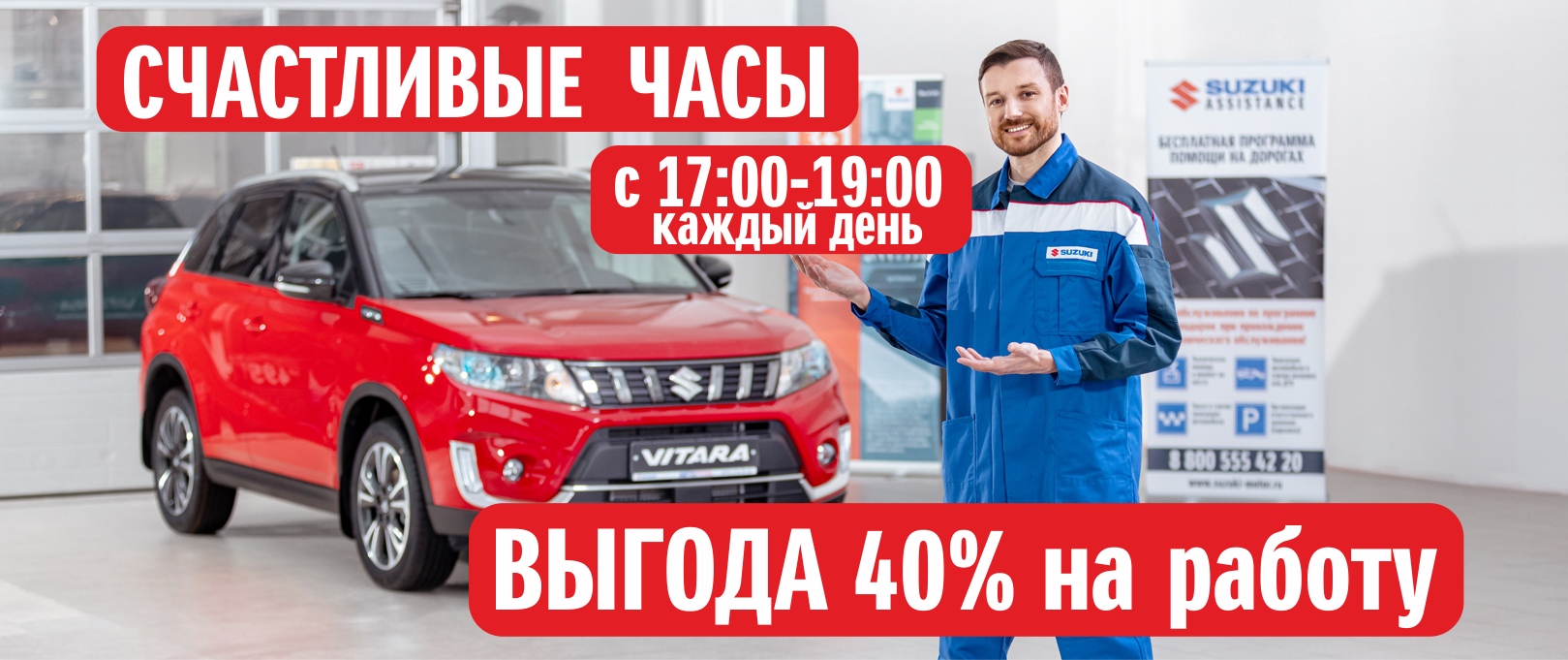 Получить выгоду 40% можно в любой день, записавшись на сервис с 17:00 до 19:00, назвав промокод «СЧАСТЛИВЫЕ ЧАСЫ».